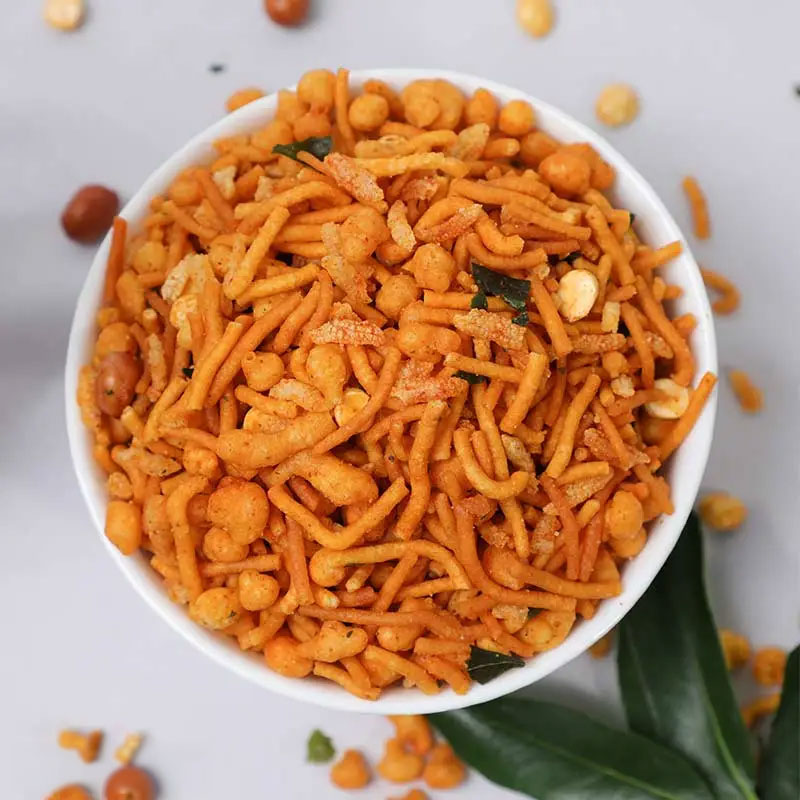 This is not the bland, mass-produced mixture from a factory floor. The Chinthalavadi Spicy Mixture comes from a small village near Trichy, Tamil Nadu, where the recipe is made to genuinely flavour-forward standards. Gram flour sev, roasted groundnuts, and pottu kadalai are combined with real curry leaves and a chilli masala that has actual heat behind it. The result is a mixture that is crunchy, aromatic, salty, and satisfyingly spicy — the kind you cannot stop at one handful. Sourced directly from the village. Cooked fresh. No compromise.